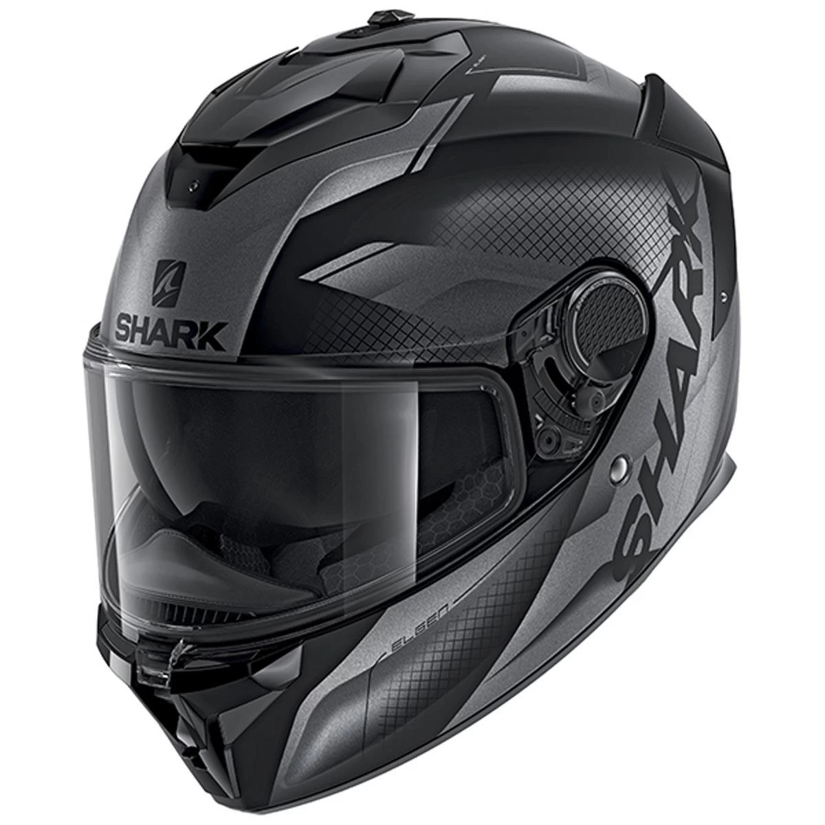 • Aerodynamically-shaped SHARK Skin side fastenings on the peak favouring passive noise abatement
